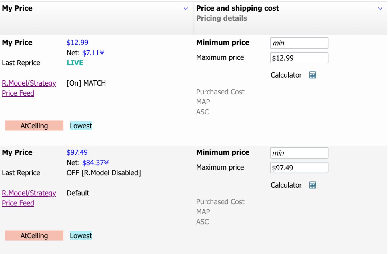 Step 2. Set Min & Max Prices to Enable Repricing